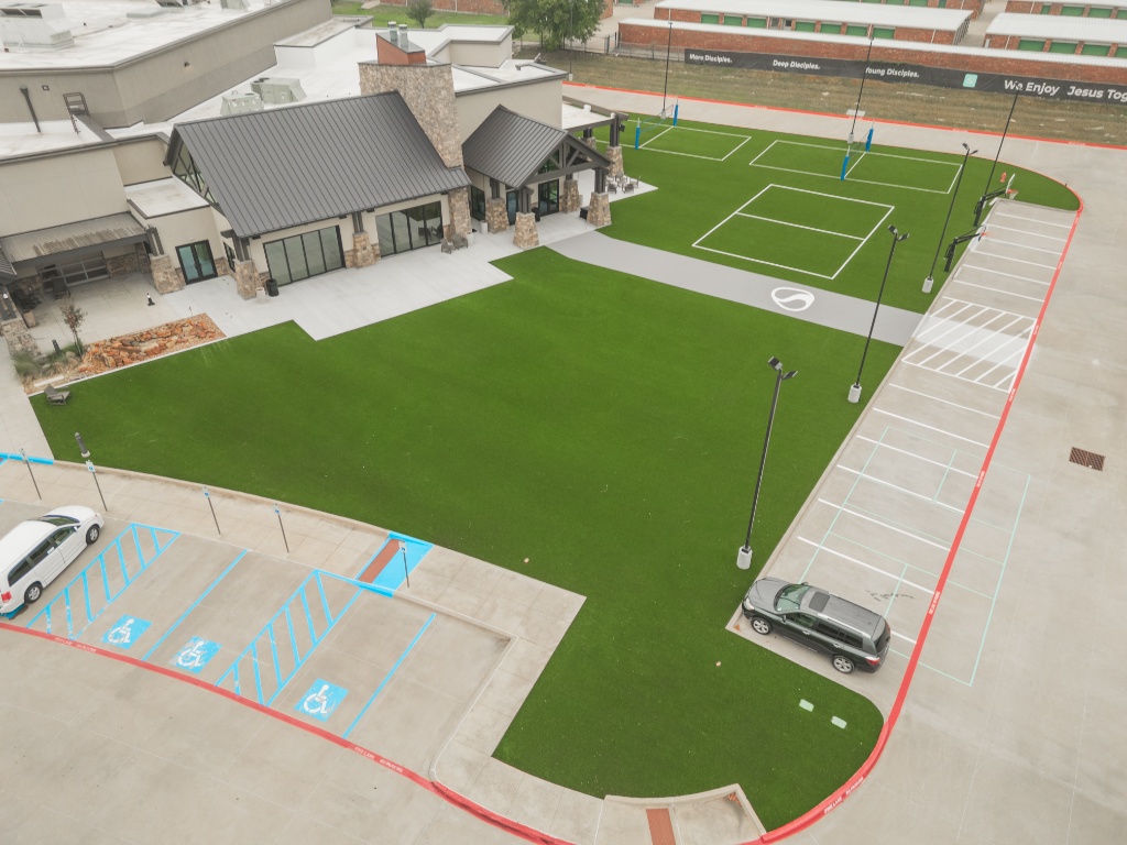 The client, Stonegate, contacted us to enhance their outdoor spaces by reducing lawn maintenance, creating areas for congregants to gather and play, and giving the church grounds a fresh, updated look.
