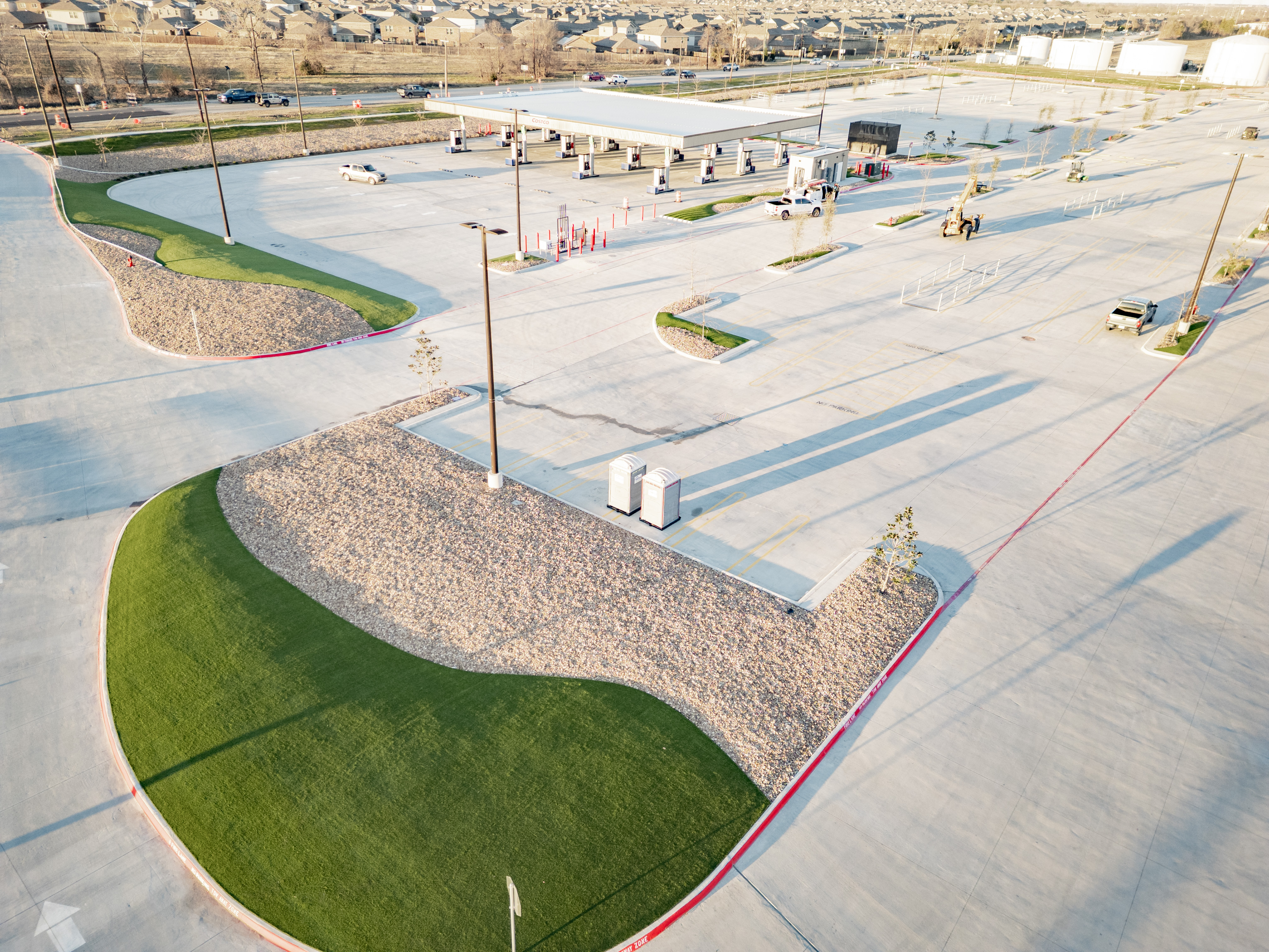 Synthetic turf was installed within the parking lot medians, creating clean, durable green spaces that improved curb appeal while significantly reducing ongoing maintenance and water usage.
