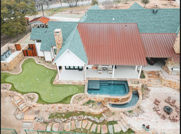 The homeowner wanted to elevate their outdoor living space with a custom synthetic turf putting green that would complement their home's resort-style backyard.