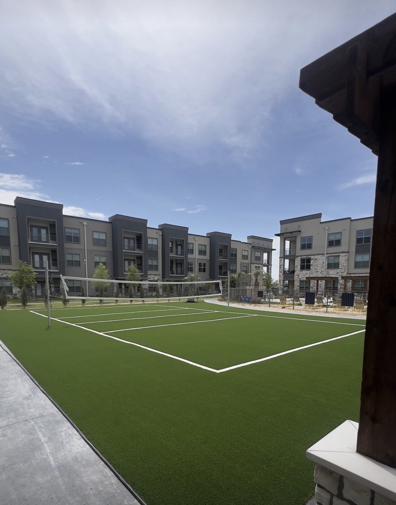 A durable, low-maintenance artificial turf volleyball court was installed, creating a clean, modern gathering space perfect for recreation, social events, and daily use by residents.